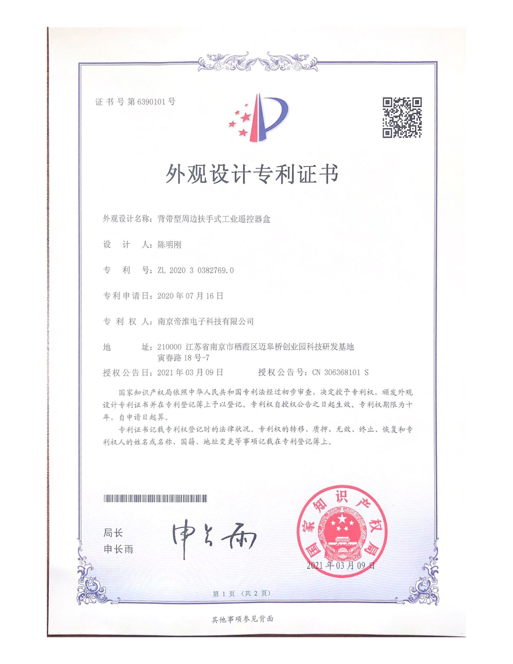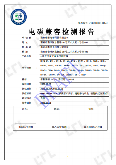 南京帝淮电子科技有限公司,国内工业遥控器行业领军企业,自主研发、定制、非标设计各类工业级无线??仄鳌⒐ひ导队邢呖刂破?、智能化自主算法逻辑的本地控制器等系列产品。已经申请及正在申请的技术专利、外观专利有近三十项左右,并通过了CE欧盟认证、国家级试验检验报告、EMC电磁兼容认证等。